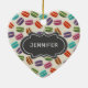 Ein personalisiertes Ornament mit einem niedlichen Makaronmuster in vielen verschiedenen Farben mit einem schwachen Polka-Punktmuster dahinter. Ein extravaganter, Vintag aussehender, schwarz-weißer Zierrahmen mit dem Text im Inneren.