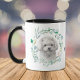 "LIEBE MY MALTESE" erklärt diese Tasse für den maltesischen Hundebesitzer. Auf jeder Seite der Tasse befindet sich ein schönes Aquarellbild eines zauberhaften Maltesers in einem blau-grünen Blattkranz. Zwischen den beiden Bildern befindet sich der Text, der von Ihnen leicht angepasst oder sogar entfernt werden kann.