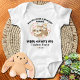 Muttertag Baby Bodysuit mit Namen und Zitat "Du machst einen tollen Job, Mommy Happy." Das Design besteht aus zwei bezaubernden Schluchten mit einem herzförmigen Kranz aus Blume, individuelle Name und Jahr.