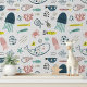 Niedliche Meereslebewesen Fisch Wale Kids Muster Wallpaper zeigt niedliche whimsical Fisch, Quallen, Wale, Krabben, Seestern und Meeresalgen auf einem weißen Hintergrund. Ideal für Kinder-Schlafzimmer, Kinderzimmer-Dekoration, Spielzimmer, Wohngestaltung, Büro und Party Dekoration. Erstellt von Evco Studio www.zazzle.com/store/evcostudio