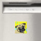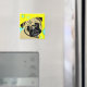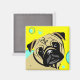 Zeitgenössische Mopskunst auf gelbem Hintergrund mit Aquafarbkreisen