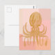 Niedliche Octopus Art Illustration in Rosa und Gol Postkarte