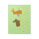 Dieses phantastische Notizblock verfügt über ein Paar niedlicher Osterbüscheln, umgeben von gelben, dunklen Blume. Die Kaninchen sind braun mit großen Ohren, schwarzen Augen und flauschigen weißen Schwänzen. Eine der Böhne hält ein Ostereier mit einem hübschen lila Bug und reicht aus, um es dem anderen Hasen anzubieten. Die Narzissen sind gelb mit einem hellen orangefarbenen Zentrum.