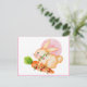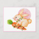 Niedliche Postkarte mit Aquarellbild eines Hasen, der eine Karotte hält.