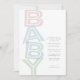 Diese niedliche und einfache Baby Dusche lädt mit einem farbenfrohen Stapel des Wortes baby zum Verweilen ein. Feiern Sie die Mutter-to-be mit dieser süßen Einladung, die zu einer abwechslungsreichen Dekoration passt und ideal für eine Babydusche, eine Babydusche oder eine neutrale Babydusche ist. Die Babydusche ist mit Party für die Gäste koordiniert. Diese pastellfarbene Babydusche lädt auch als digitale Einladung zum Download ein.