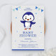 Die niedliche Babydusche lädt mit einem hübschen kleinen Pinguin mit lebendigen Elementen auf hellgrauem Hintergrund zum Verweilen ein. Fügen Sie einfach Ihre Veranstaltungsdetails zu dieser einfach zu bedienenden Vorlage hinzu, um sie zu einer einmaligen Einladung zu machen. Dreh die Karte auf, um ein blau-weißes Streifen-Muster auf der Kartenrückseite zu erkennen.