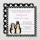 Niedliche Winterhochzeit Einladung in einem whimsical schwarz, mit weißem Polka Punkt Hintergrund. Ein weißer Textbereich über dem Hintergrund ist dekoriert, mit einer primitiven Grafik eines Braut- und Bräutigam-Pinguins. Der gesamte Text ist individuell auf Ihre Hochzeitsbedürfnisse abgestimmt. Schön Winterhochzeit für das lustige Liebespaar.