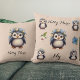 Niedliche Pinguine mit Blume Name & Monogramm Beig Kissen