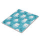 Eine Keramik mit einem niedlichen Weihnachtsmuster mit Eisbären, die auf schwimmendem Eis mit roten Weihnachtsmannmützen stehend sind. Kleine Iglus, Schneeflocken und Fische umgeben diese bezaubernden Eisbären, die auf dem Wasser abkühlen. Hellblauer Hintergrund. Niedliche und skurrile Urlaubsplanung.