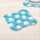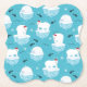 Untersetzer mit einem niedlichen Weihnachtsmuster mit Eisbären, die auf schwimmendem Eis mit roten Weihnachtsmannmützen stehend sind. Kleine Iglus, Schneeflocken und Fische umgeben diese bezaubernden Eisbären, die auf dem Wasser abkühlen. Hellblauer Hintergrund. Niedliche und skurrile Urlaubsplanung.