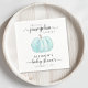 Niedliche Babydusche-Servietten mit "A Sweet Little Pumpkin Is On Your Way" in schlichter grauer Typografie und stilvollem Drehbuch mit Wimpern und einer niedlich pastellblauen Wasserfarbe eines Kürbis.
