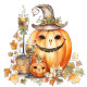 Niedliche Kürbislaternen mit Herbstlauben, Bögen und Wimpern. Ein tolles Herbstdesign.