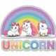 Dieses Design enthält drei niedliche Einhörner vor einem farbenfrohen Regenbogen mit dem Wort "Einhorn" unten. #unicorn #colorful #rainbow #kids #niedlich #girs #modern #fantasy #pink #stickers #laptopstickers #labels #crafts #crafts #partysupplies #girls
