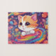 Sweet kleine niedliche Babykatze mit Regenbogenfarben in einer Fantasiewelt, Fantasiekunststil, Wasserfarbenkatze für Kinderzimmer, Kinderzimmer, Mädchenzimmer, Wasserfarbenküche, Colors Splash Cat, Kitten Art
