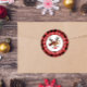 Niedlicher rustikaler Weihnachtsaufkleber für Ihre Weihnachtsbriefe und -karten mit einem niedlichen Rentier mit einer großen roten Nase und einem Bogen in ihren Antlers. Roter Büffel-Karo. North Pole Air Mail geschrieben in kurvigem Text mit Schneeflocken.
