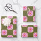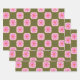 Niedliche Retro Boho Checkerboard-Blume grün rosa Geschenkpapier Set