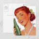 Niedliche Retro Junge Frau mit Pop Flasche Postkarte