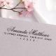 Rücksendeadresse Gummi Briefmarke mit Ihrem Namen und Familiennamen in einem romantischen Kalligraphieskript-Schriftart und der unten stehenden Adresse