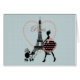 Niedliche romantische Vintage Girl-Silhouette zu Fuß Französisch Poodle Eiffel Turm Paris rosa Punkte Herz weich weißen Polka Punkte Hintergrundbild drucken