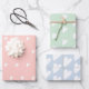 Gemüsepastellrosa, blau und grün verpacktes Papier mit hübschem Herzmuster. Hübsche, gürtelweiche Pastellfarben. Ideal zum Verpacken von Geschenken für ihren besonderen Tag oder Anlass. Niedliche rosa blaue, grüne Herz-Packpapier Blätter.