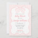 Feiern Sie die Ankunft Ihres Kleinen mit unserer niedlichen Baby Girl Dusche Einladung. Mit einem rot-rosa Bogen auf einem Band und einem Punkt im Hintergrund, ist diese Einladung ein Set für ein Frühlings- oder Sommerfest.