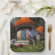 Zieh dein nächstes Party mit diesen Tellern aus Papier, die eine niedliche, rosa haarige Fee mit blauen Flügeln aufweisen, die einen Ladybug begrüßen, der in einen Zauberwald in der Nähe des kleinen Pilzhauses der Fee geraten ist.