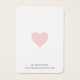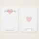 Benutzerdefinierte Ohrring-Inhaberkarte mit einem einfachen Design mit einem niedlichen rosa Herz und Ihrem Firmennamen, der sich in einem eleganten Drehbuch überlagert. Der untere Teil hat Ihren Slogan und die Rückseite hat Ihre Kontaktinformationen. Fügen Sie Ihrem handgefertigten Schmuckgeschäft eine berufliche Touch mit diesen Ohrring-Display-Karten hinzu.