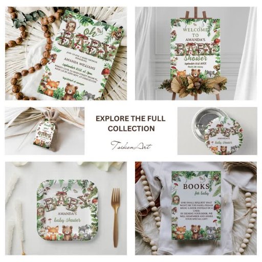Woodland Forest Animals Botanical Baby Dusche danke Karte