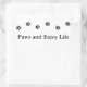Ein Welpenpun oder vielleicht ein lustiger Freund mit Pfotendrucken über die Worte "Paws and Enjoy Life".