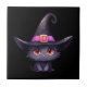 Niedliche schwarze Katze mit Hexenhut Fliese