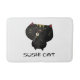 Schwarzes und niedliches. Katze, die Rollen der Sushi isst.