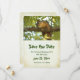 Save the Date Karte mit einem hübschen Bild eines braunen Eichhörnchens, das auf einem Baumzweig stehend ist und Sie mit einem inquisitiven Gesicht anschaut.
