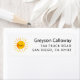 Rücksendetikett mit Aquarellbild einer gelb lächelnden Sonne. Sie können diese zum Geburtstag oder zum Baby-Dusche verwenden.