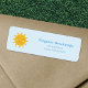 Eine gelbe niedliche Sonne in Kawaii Stil Rücksendeadresse Label auf einem hellblauen Hintergrund: Fügen Sie eine Touch guten Spaß zu Ihren Briefen und Paketen!