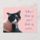 Friedliche und freundliche Nachricht, Wenn ich an Sie denke, denke ich an Frieden, ist neben einer niedlichen schwarz-weißen Tuxedokatze mit einem rosa und weiß gestreiften Kleid gedruckt, ist auf Postkarten gedruckt. Vielen Dank für Ihren Einkauf bei CherylsArt auf Zazzle.