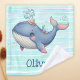 Dieses personalisierte Kinderwaschtuch ist mit einem niedlichen Whimsikwal in einem lebendigen rosa und blauen Farbschema ausgestattet, das spielerisch mit einem winzigen Hut schwimmt.