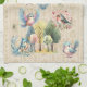 Niedliche alberne Vögel um Bäume. Farbiges Teetuch. Tan Damast Hintergrund. Danke, dass du gesucht hast! Sehen Sie sich die ganze Küchen- und Kalendertochensammlung an: https://www.zazzle.com/pd/editcollection?id=119787569222091595