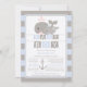 Moderne Wal Babydusche mit niedlichem Mama-Wal mit Baby-Set auf blau & hellgraubraunem Streifenhintergrund mit Ankerakzent und anhängenden Bannern. Dreh unsere Jungs Babydusche und lade sie ein, sich ein passendes Rücken für eine besondere Touch anzusehen. Ideal für eine kleine Babydusche mit Wassersport.