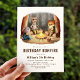 Niedliche Party Einladung des Kindergeburtstags mit einer Aquarelldarstellung von Waldtieren, die um ein Lagerfeuer herum sitzen, während sie uns toasten. Personalisieren Sie den Geburtstag eines Waldtieres mit dem Namen, dem Alter und den Party des Geburtstags oder Mädchens. Diese bezaubernden Geburtstagsfeiern sind perfekt für die Geburtstagsfeier Ihres Kindes oder Campings.