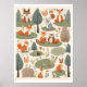 Niedliche Waldtiere wie Füchse, Eulen und Kaninchen, die einen zauberhaften Wald inspiriert, mit hellrosa Hintergrund und hübschen Bohu-Farben, geeignet für Kinderzimmer und Kinderzimmer. Erhältlich als physisches und digitales Poster.