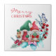 Niedliches Weihnachtsbein mit Weihnachtsbaum und Laterne auf einem Kranz aus Misteloe, Poinsettia