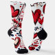 Diese Valentinstag-Socken zeichnen sich durch ein lebendiges und skurriles Design aus, das mit Liebe-Themen-Elementen gefüllt ist. Das Muster beinhaltet kühne rote Herzen mit künstlerisch schwarzen Konturen und handgezeichnet Details, die ein spielerisches und lebendiges Ambiente schaffen. Die Mischung aus dunkelblau und rot verleiht der Komposition Kontrast und Tiefe, während abstrakte Blumenelemente die romantische Ästhetik verstärken. Monogramme ("MW") erscheinen subtil oben, unten und vorne auf jeder Socke, was dem Design eine personalisierte Touch verleiht, die perfekt zum Gießen oder Anpassen geeignet ist. Die Socken sind mit schwarzen Heelsen, Zehen und Manschetten versehen, die das Gesamtbild und die elegante Oberfläche in Einklang bringen. Ideal für Valentinstag-Feiern oder als unterhaltsame und stilvolle Ergänzung zu jedem Outfit verbinden diese Socken Komfort mit einem herausragenden künstlerischen Flair. Ersetzen Sie die Monogramm-Initialen durch Ihre eigenen bevorzugten Initialen.