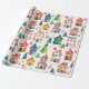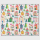 Niedliche Weihnachtshäuser, die so festlich und farbenfroh sind, schmücken diese Rolle von Packpapier. Vergnügungs-Szenen festlicher kleiner Zuhause im weißen Schnee, in winterlichen Gassen mit sternbedeckten Bäumen vermischt. Das Aquarellmuster hat einen Vintagen Ursprung mit einer Retro-Touch, die heute so beliebt ist.