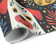 Niedlichen kleine Hunde erscheinen in diesem festlichen Packpapier. Sie sind eine Freude für Ihr Weihnachtsgeschenk, das Ihren Hunden liebenden Freunden und Familienmitgliedern schenkt. Das Design stammt aus der festlichen und farbenfrohen Kunst des Fauvismus und auch ein wenig volkstümlichen Einfluss. Der schwarze Hintergrund betont das farbenfrohe Aussehen. Mit den Lieblingsbildern sind Weihnachtsbäume, Grünpflanzen und fantasievolle Beeren, Blätter und andere dekorative Stücke der Winterferien.