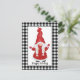 Die niedliche, individuell anpassbare Ferienkarte zeigt das Mädchen-Gnome mit langen weißen Flechtwerk, in Santa Rot-Outfit gekleidet, mit schwarz-weißem Büffel karierte Rahmen. Personalisieren Sie mit Ihrem eigenen Gruß oder verlass "Happy Holidays" wie es ist.