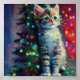 Weihnachtskätzchen, Weihnachtsbaum und Lichter. Niedliche künstlerische Arbeit.