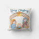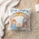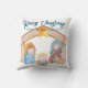 Dieses Weihnachts- oder religiöse Urlaubskissen zeichnet sich durch eine niedliche Aquarellmalerei aus, die die Krippenlandschaft veranschaulicht. Jesus, Maria und Joseph werden in der Manier abgebildet, wobei der Weihnachtsstar oben leuchtet. Ein kleines Lamm wird unten rechts abgebildet.