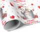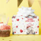 Das niedliche Muster auf diesem Weihnachtsverpackungspapier ist ein bezaubernder Polar Bärenkub, der eine Weihnachtsmannmütze trägt und aus einem Holzeimer herausguckt. Zwischen den Bärenbildern befindet sich Ihr eigener Text in rot. Alles wird auf einem mehrfarbigen, runden Kugel konfetti Hintergrund platziert, der mit roten Herzen und einigen goldenen Sternen bestreut ist. Dies ist ein perfektes Papier für Großeltern, Eltern, Tanten und Onkel, um Familiengeschenke einzupacken. Sehen Sie sich die Geschenketiketten und andere passende Produkte in unserem Shop an.