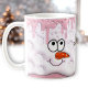 Niedliche Weihnachtsschmelze Snowman Gesicht Rosa Kaffeetasse