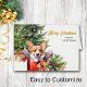 Auf dieser Urlaubskarte, ein niedlicher Corgi Hund Pop aus einer roten Weihnachtszeit Geschenkboxen. Hinter ihm steht ein verzierter Holiday-Baum. Der goldene Text auf der rechten Seite sagt "MERRY CHRISTMAS", mit GLÜCKLICHEM NEUEN JAHR in grün darunter. Der gesamte Text, innen und außen, kann leicht auf alles geändert werden, was man möchte. Im Dog Village können Sie mehr Hundebilder und Produkte sehen.
